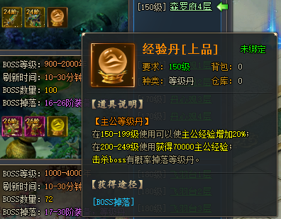 等级丹:使用等级丹可快速获得主公等级。击杀野外BOSS有概率掉落等级丹。