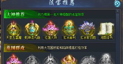 展示游戏大神的法宝搭配阵容及常规的推荐搭配阵容。