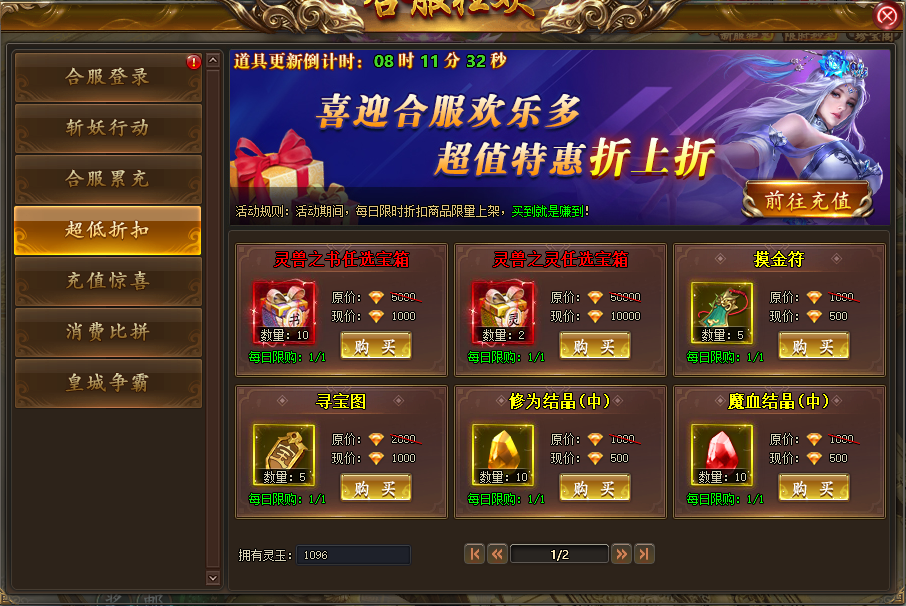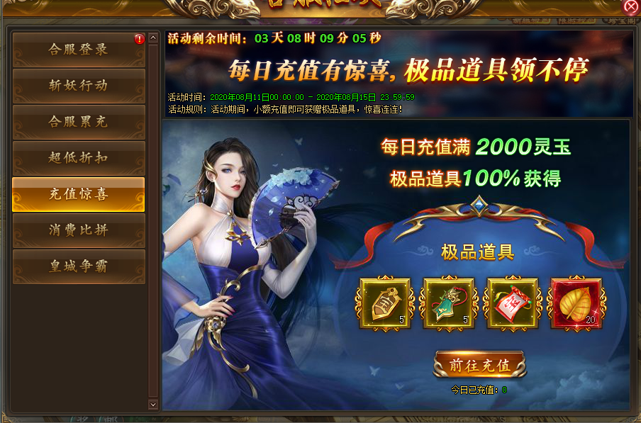 【活动内容】活动期间,小额充值即可获赠极品道具,惊喜连连!