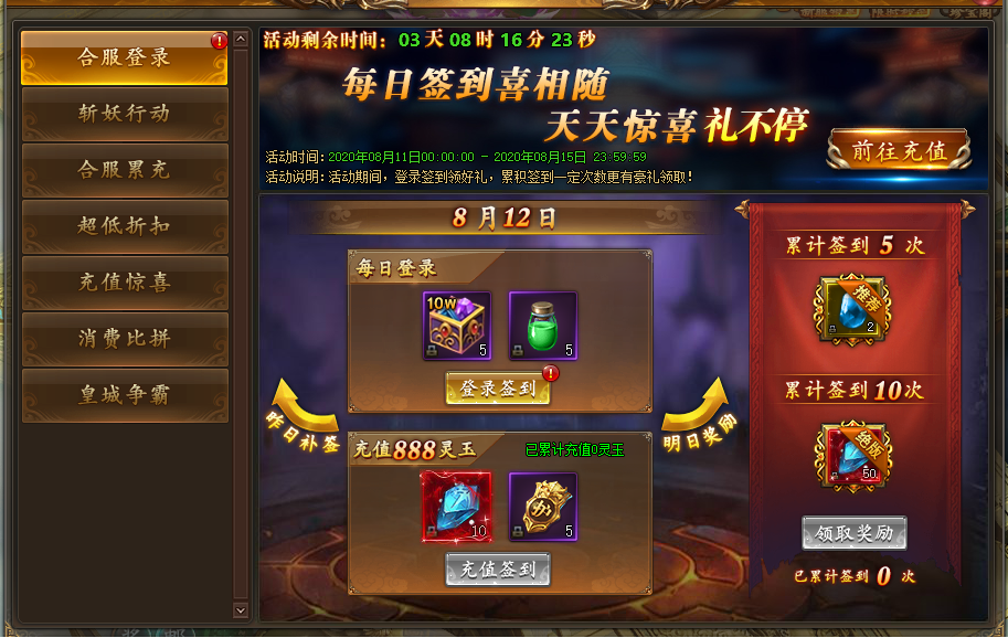 【活动内容】活动期间,登录签到领好礼,累积签到更有豪礼赠送!